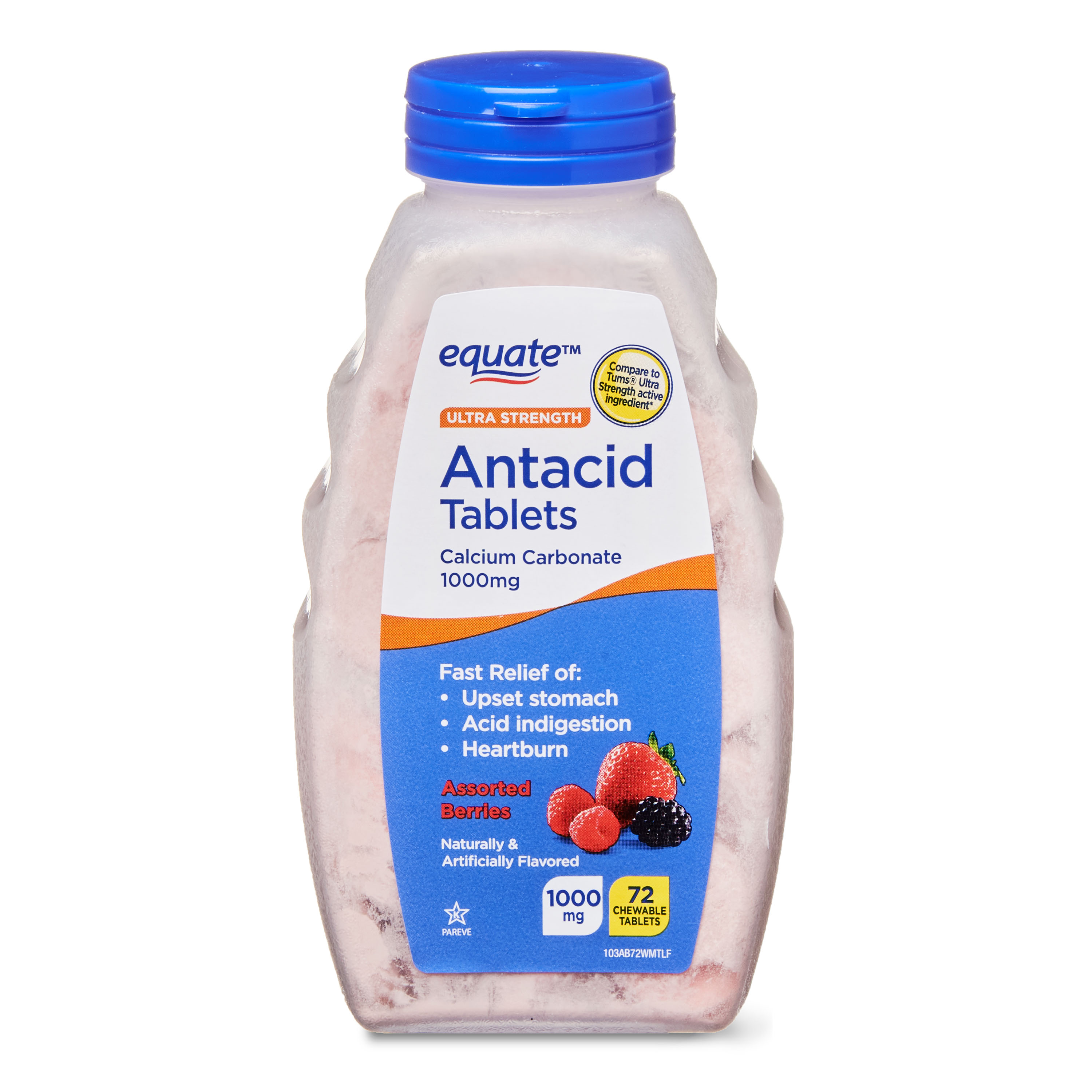 Equate Ultra Strength Antacid Assorted Berries Chewable Tablets, 1000 mg, 72 count