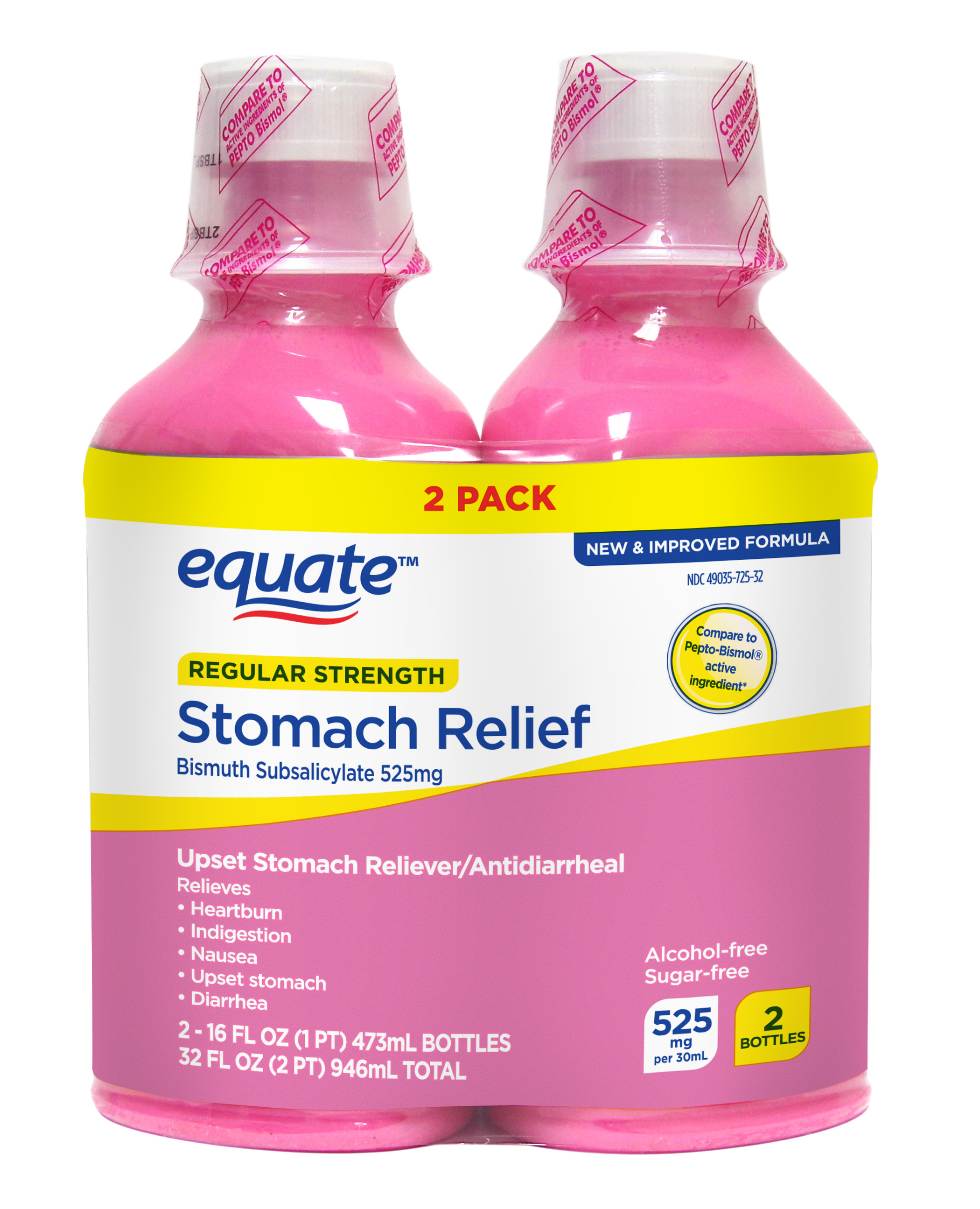 Equate Upset Stomach Relief Bismuth Liquid, 16 oz, 2 Pack