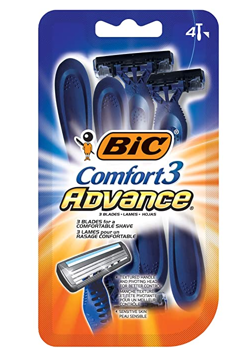 BIC Comfort 3 Advance Men’s Disposable Razor, 4 Count