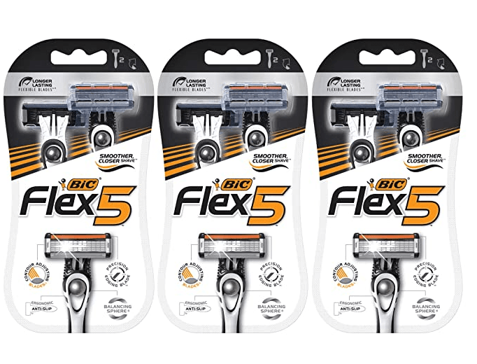 BIC Flex 5 Men’s 5-Blade Disposable Razor, 2 Count – Pack of 3 (6 Razors)