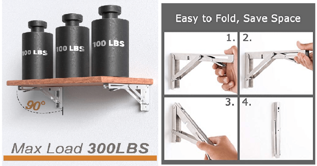 Shelf Hinge Wall Mounted Space Saving DIY Bracket, 2 PCS Max Load 300lb