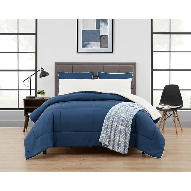 Serta So Cozy 5-Piece Sherpa Reverse Comforter Set, Washed Indigo, ALL SIZES – $24.88